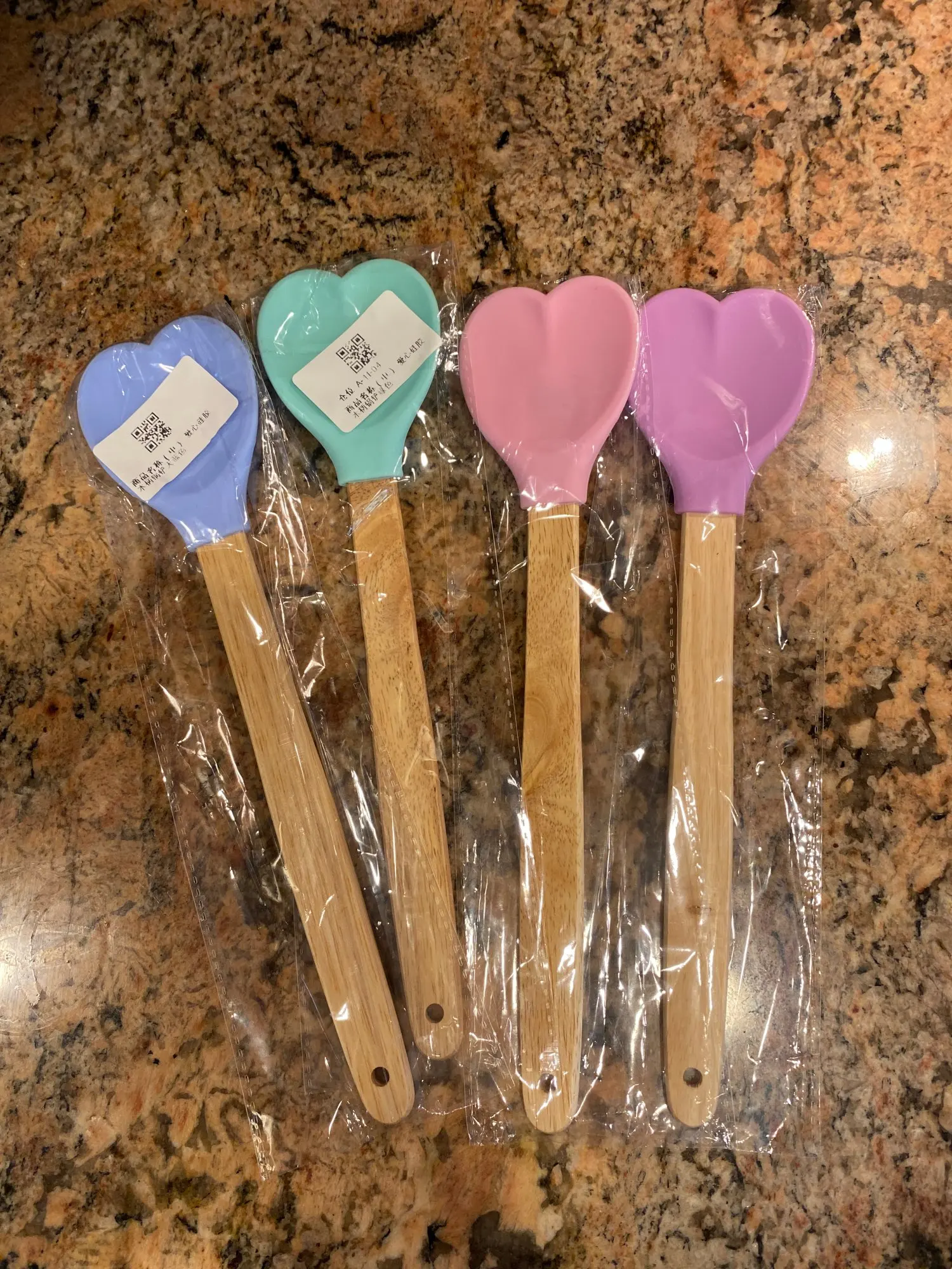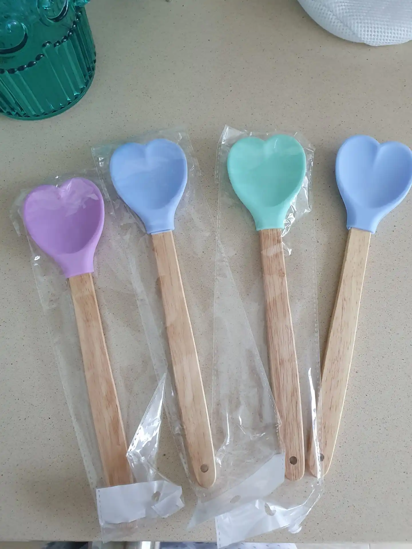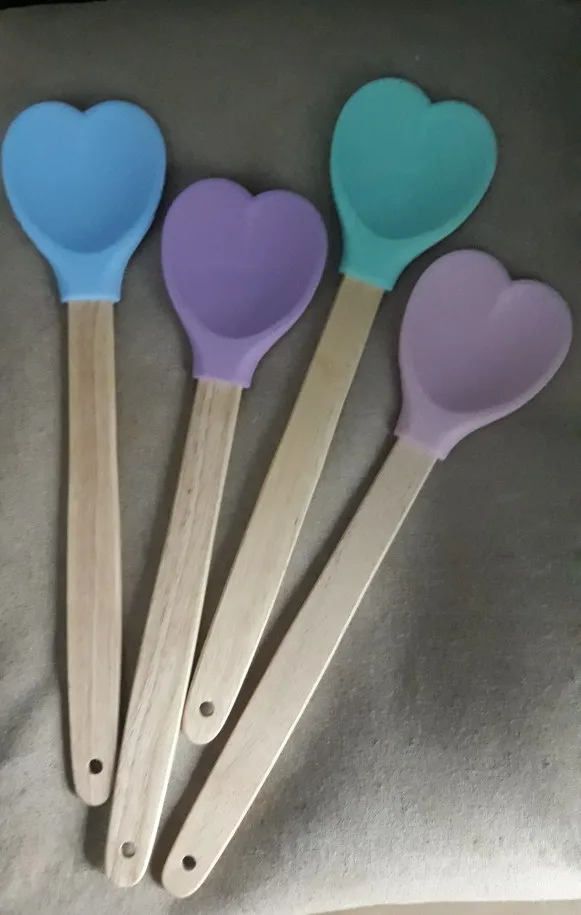 Силиконовые лопатки для теста в форме сердца с деревянной ручкой, аксессуары для печенья, ложки для выпечки, кухонные инструменты, принадлежности, утварь