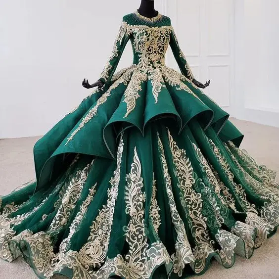 Темно-зеленое, с длинным рукавом платье для выпускного вечера Саудо...