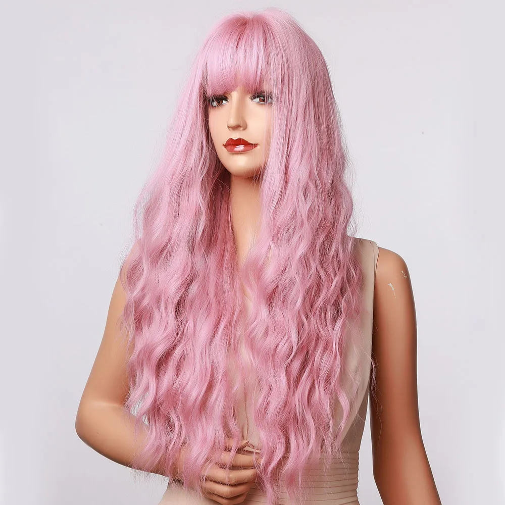 Женский парик с волнистыми длинными волнистыми волосами, с челкой