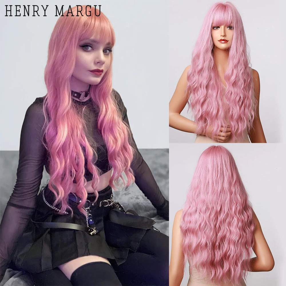 Анри маргу светильник розовый Омбре синтетические парики с челкой длинные волнистые натуральные волосы парики вечерние косплей парик для женщин термостойкие