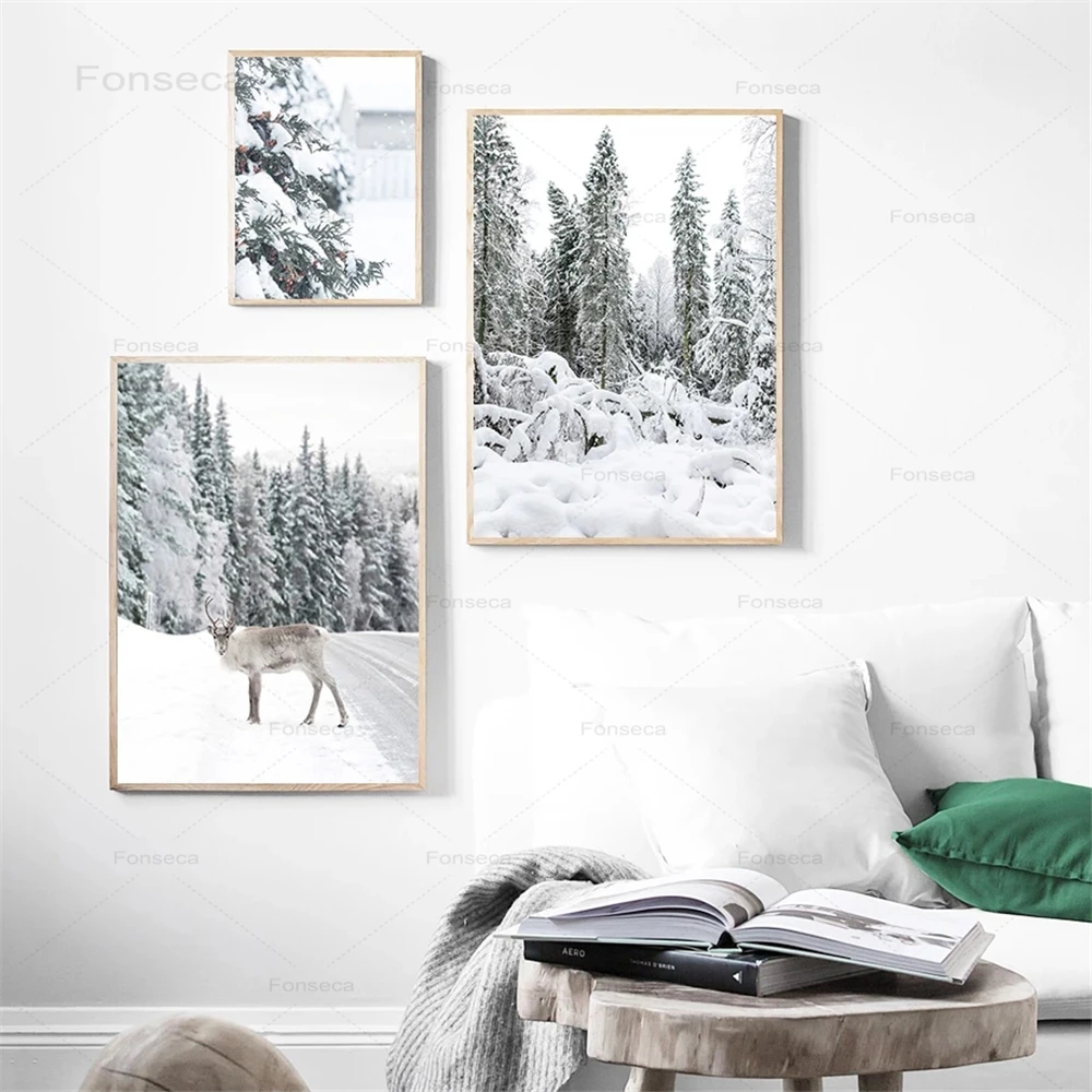 Настенная картина в скандинавском стиле с изображением зимнего пейзажа соснового леса