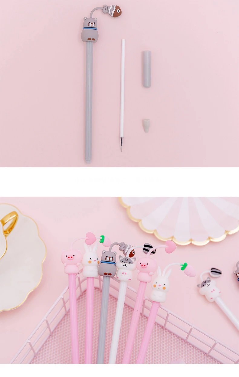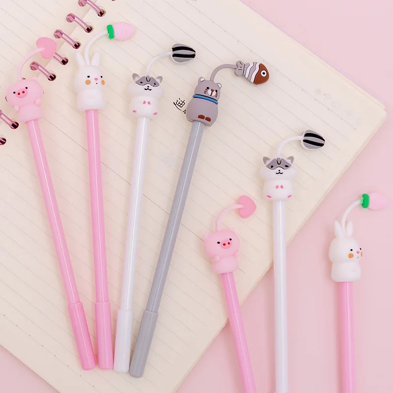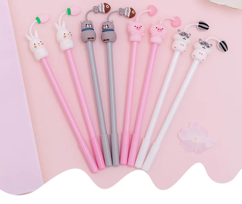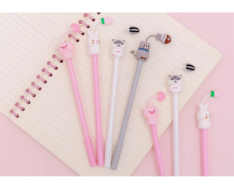 Креативный веер для девочек, Мягкая Милая гелевая ручка с животными, углеродная черная авторучка для студентов, маленькая свежая ручка-шприц, канцелярские принадлежности