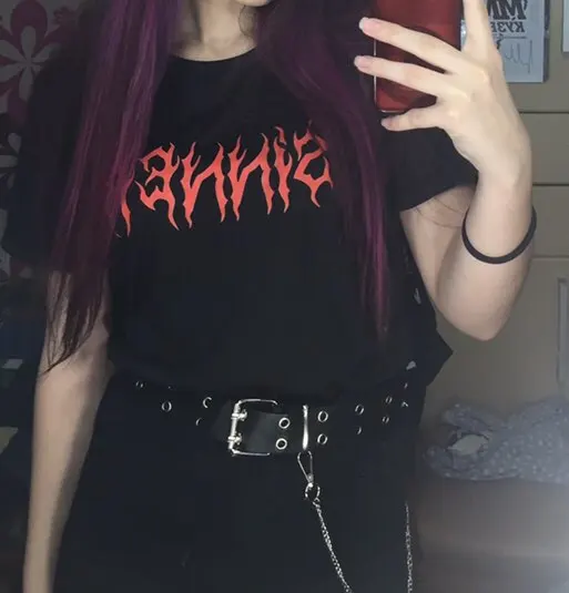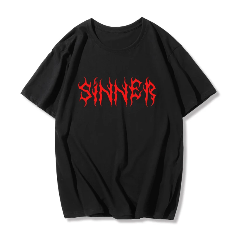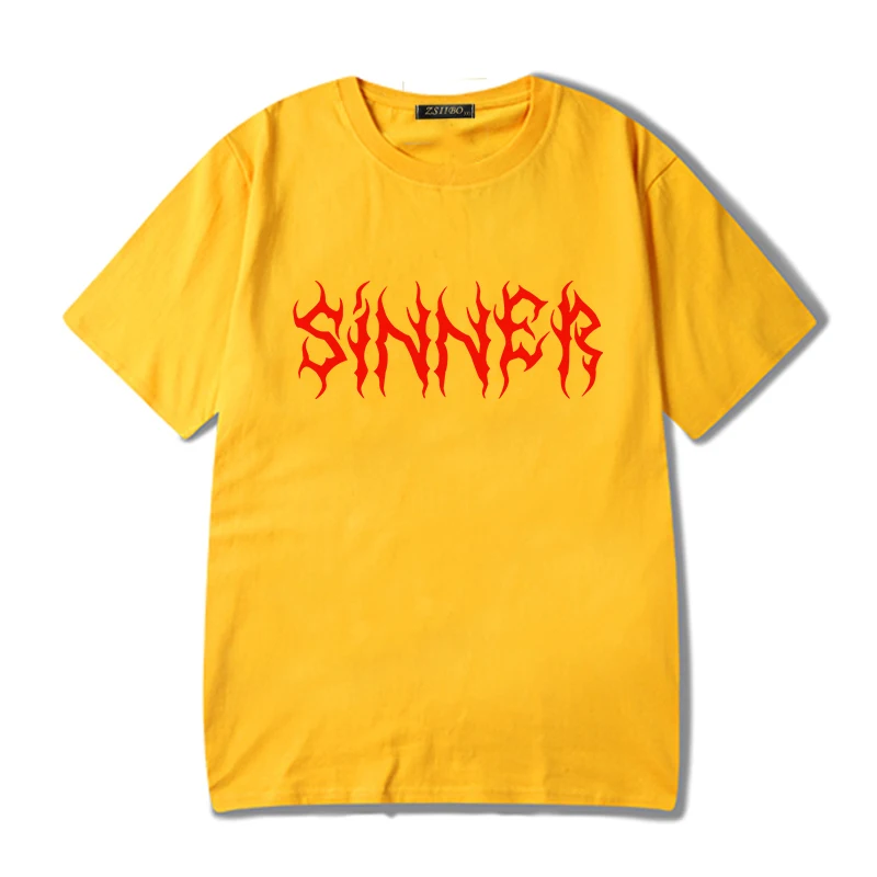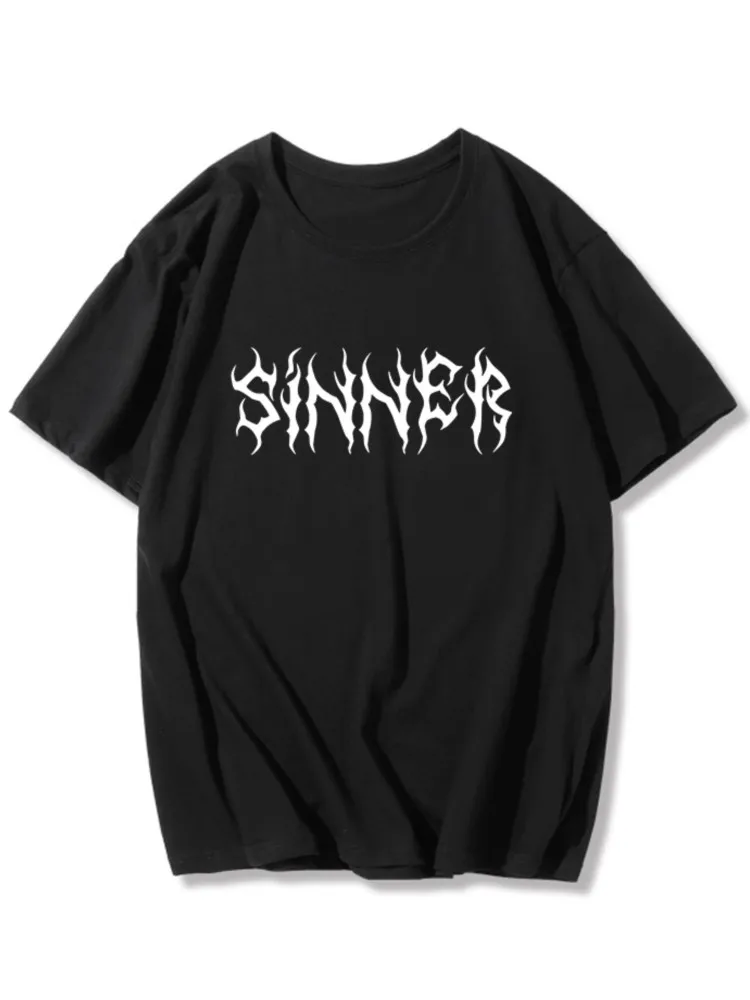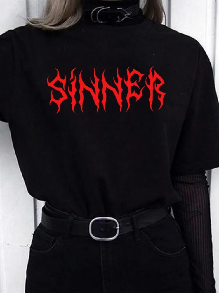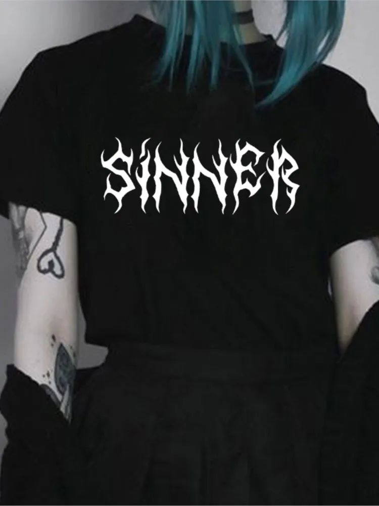 Футболка Sinner с буквенным принтом Harajuku, хипстерская, в стиле панк, унисекс, уличный стиль, свободная, повседневная, классная, готический женский топ