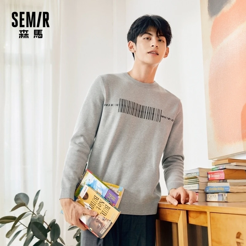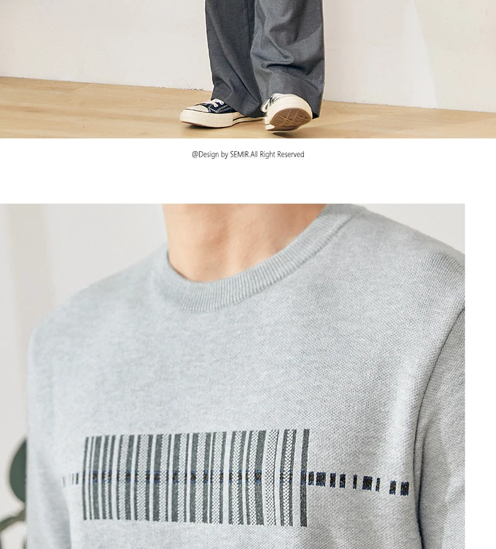 Мужской свитер SEMIR, осень 2021, новый свитер с круглым вырезом, подходящий по цвету, мужские трендовые утепленные Топы