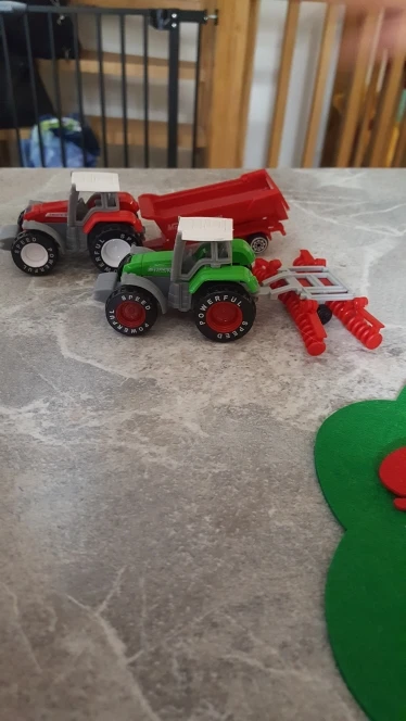 Трактор немного маленький, но уже подходит, иначе он выглядит так же, как на картинке, моему ребенку нравится