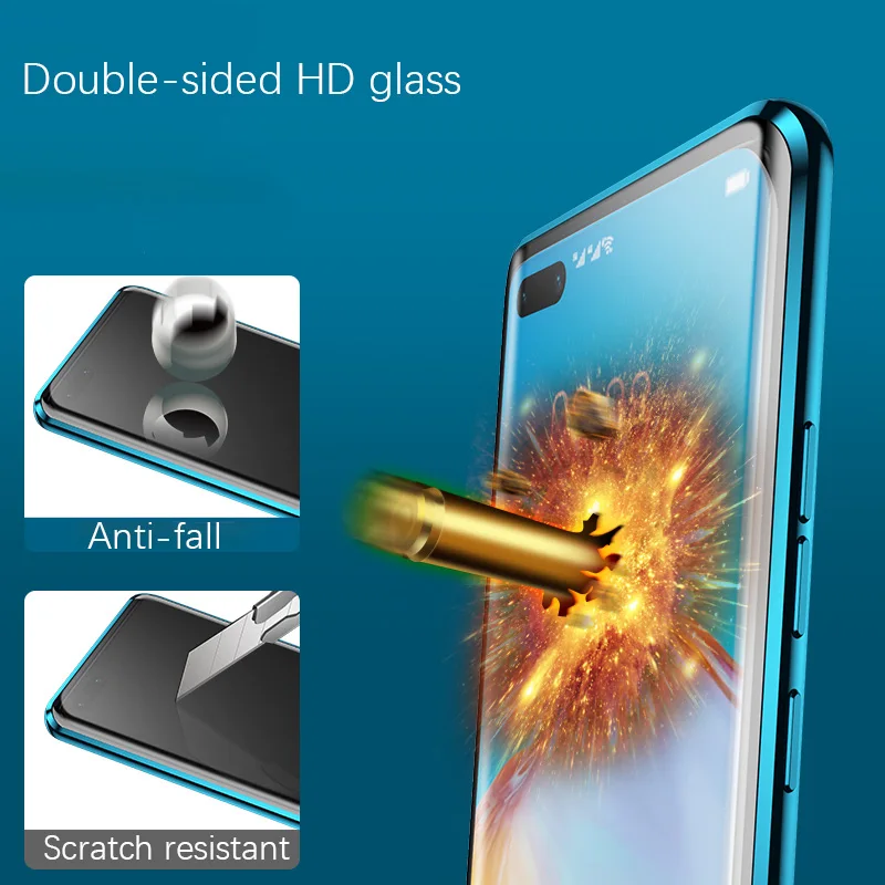 Двухсторонний Магнитный стеклянный чехол с поглощением на 360 градусов для Huawei P30 P40 P20 Lite Pro For Honor 30 20 9X Nova 6 7 SE, чехол