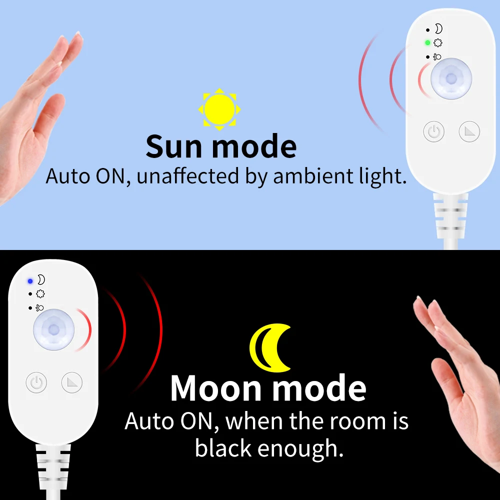 · Режим «Луна», Работает только в темноте. Когда продукт обнаруживает движение человека, он включит автоматический светильник.