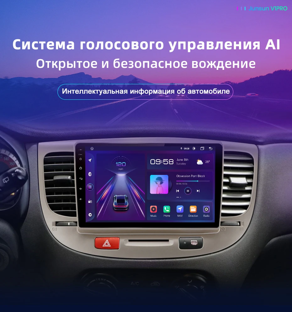 > Функция Junsun V1 для KIA RIO 2 2005-2011> Основные функции: Android 10,0 + 9 дюймовый IPS экран + четырехъядерный 1,2 ГГц (восемь ядер 1,8 ГГц опционально) + DDR3 1 ГБ флэш (2 ГБ/4 ГБ/6 Гб опционально) + 16 Гб памяти (32 ГБ/64 Гб/128 Гб опционально) + WIFI (сеть 4G опционально) + зеркальная связь + управление рулевым колесом + RDS/DSP (опционально)> Специальные функции:1. PIN-PIN:Junsun радиокабель питания-pin, прост в установке;2. Встроенный Carplay/ Android Auto: Поддержка версии V1/V1Pro, просто используйте кабель телефона, подключите его, стабильный и простой в использовании;3. Поддержка подголовника: только поддержка версии Junsun V1;Дополнительные аксессуары> Голосовое управление AI: Просто скажите слово команды Управляйте радио без рук, сделайте диск более безопасным> ADAS DVR камера, мониторинг давления в шинах, OBD2, внешний микрофон, RCA кабель;