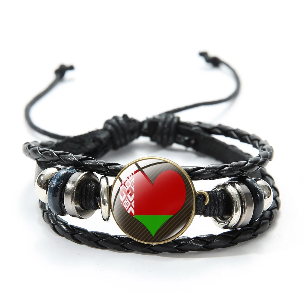Браслет из белой рыцарской кожи (Республика Беларусь), прозрачное стекло, художественное фото многослойная плетеная веревка, мужской браслет Pulsera