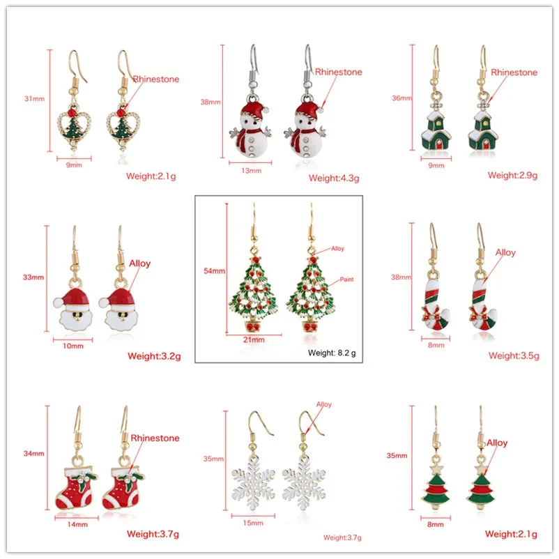 Рождественские серьги из цинкового сплава, праздничные украшения, 1...
