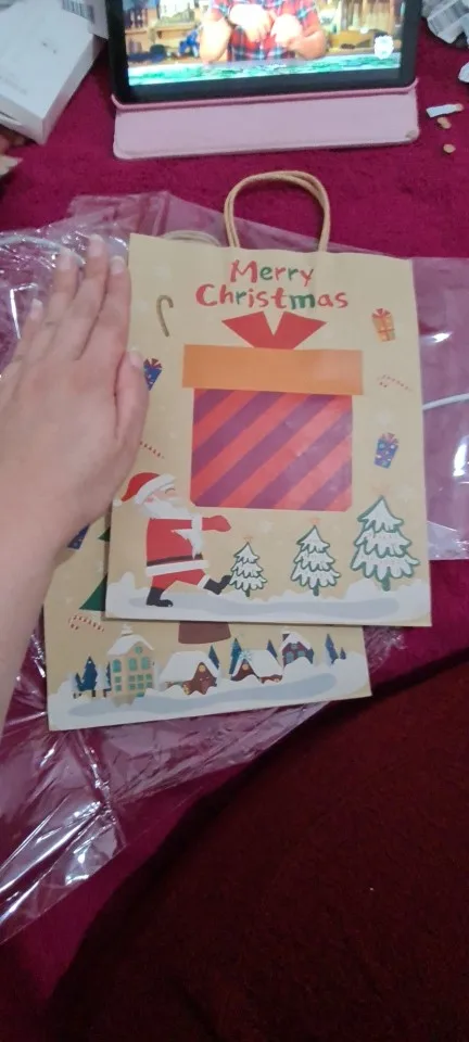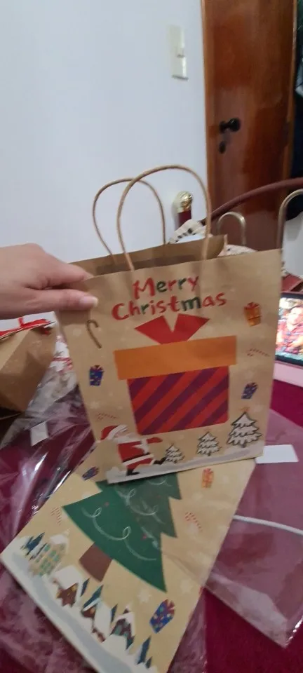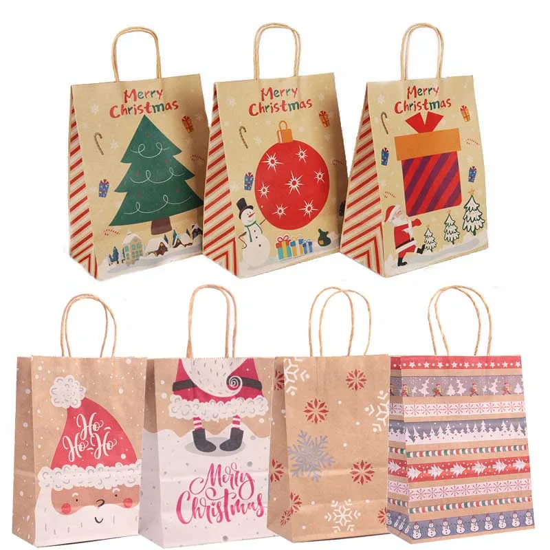 Подарочные пакеты с Рождеством, мешочки с Сантой, сумка из крафт-бумаги, Сумка с рождественской елкой, лосем, рождественской коробкой для конфет, Новогодняя упаковка