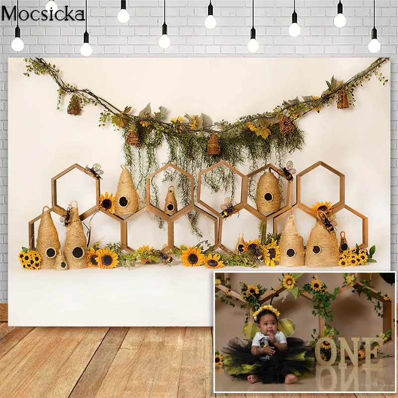 Mocsicka Honey Cake Smash 1 день рождения фотографии фоны пчела день подсолнуха цветочные дети Фотостудия Фото фоны