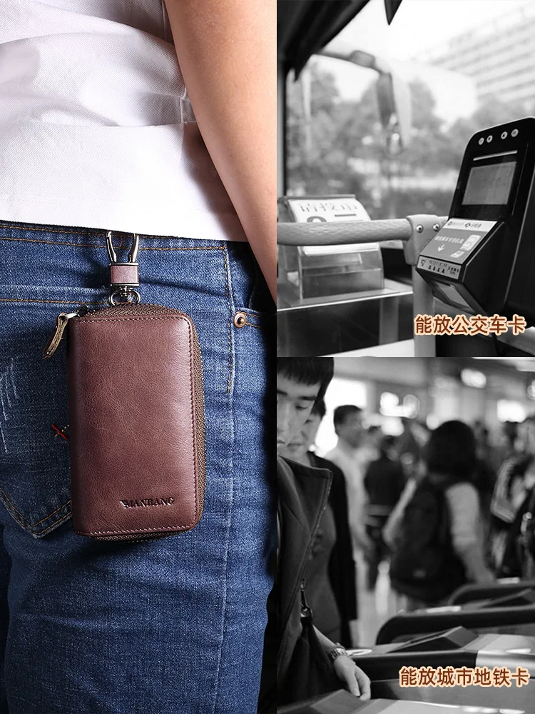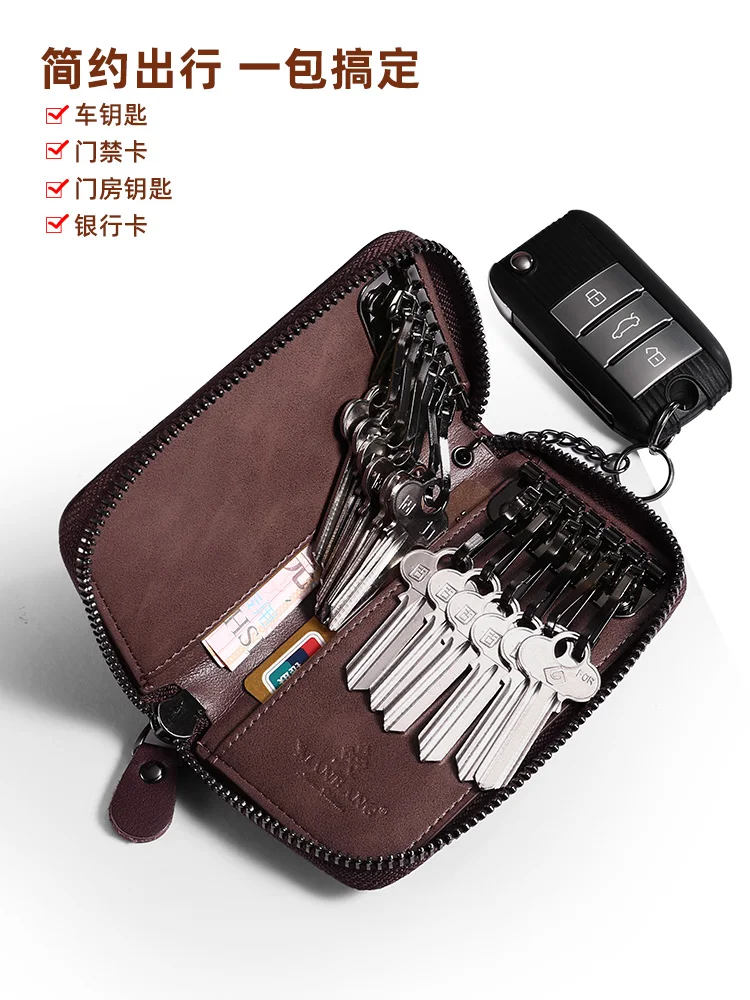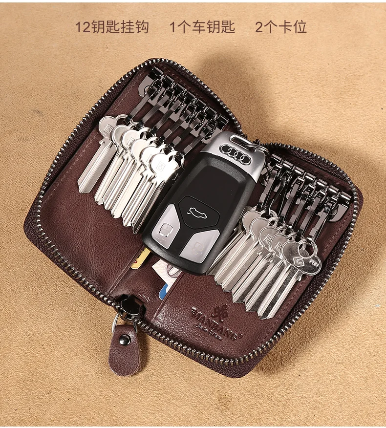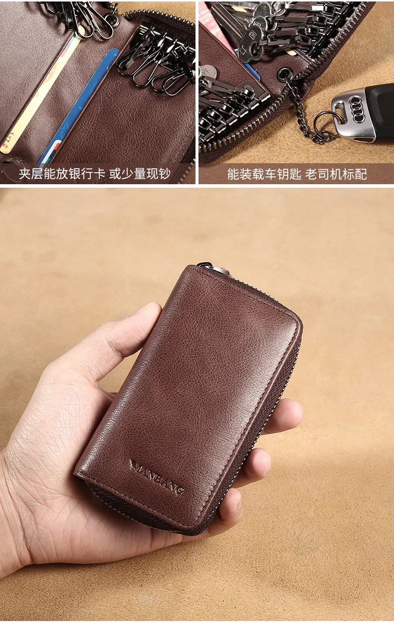 Чехол-Кошелек для ключей, из натуральной кожи, на молнии