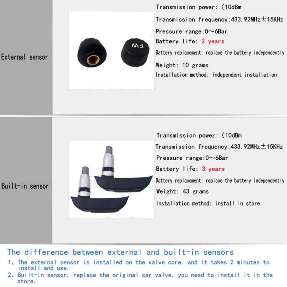 Особые характеристикиSolar charging TPMS