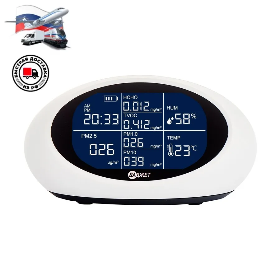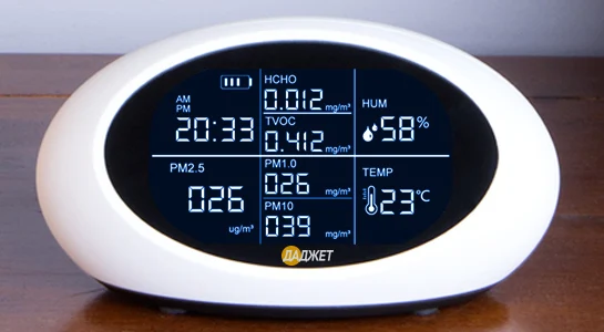 С помощью звукового сигнала прибор оповестит о том, что в воздухе превышена концентрация вредных веществ. Поэтому вы сможете вовремя проветрить помещение и избежать плохого самочувствия! Также все данные о показателях вы будете видеть на удобном дисплее.