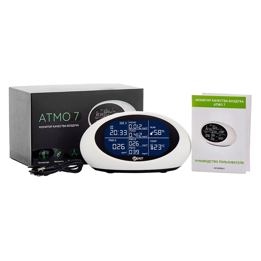 АТМО 7 – детальный контроль качества воздуха, который доступен каждому! Настоящая лаборатория в компактном корпусе. Теперь атмосфера в помещении под его наблюдением!