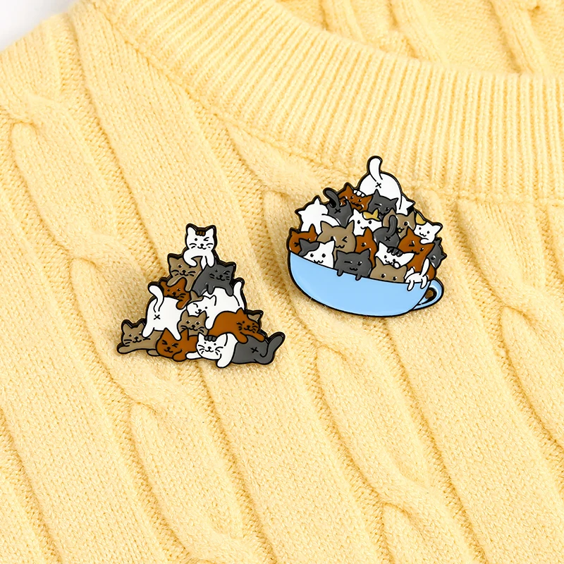 Милые эмалированные заколки в виде чашки кошек, мини-броши в виде животных, значки на лацкан, модные Мультяшные заколки, подарки для друзей, оптовая продажа ювелирных изделий