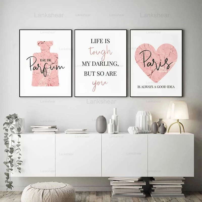 Картина с розовыми искусствами и принтами, серые, розовые, золотые,...