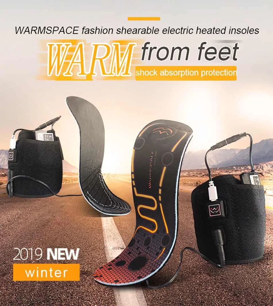 Теплые стельки для обуви Warmspace, стельки с перезаряжаемым подогревом, 3600 мА ч, электрическая грелка для ног, стельки с подогревом для занятий спортом на открытом воздухе