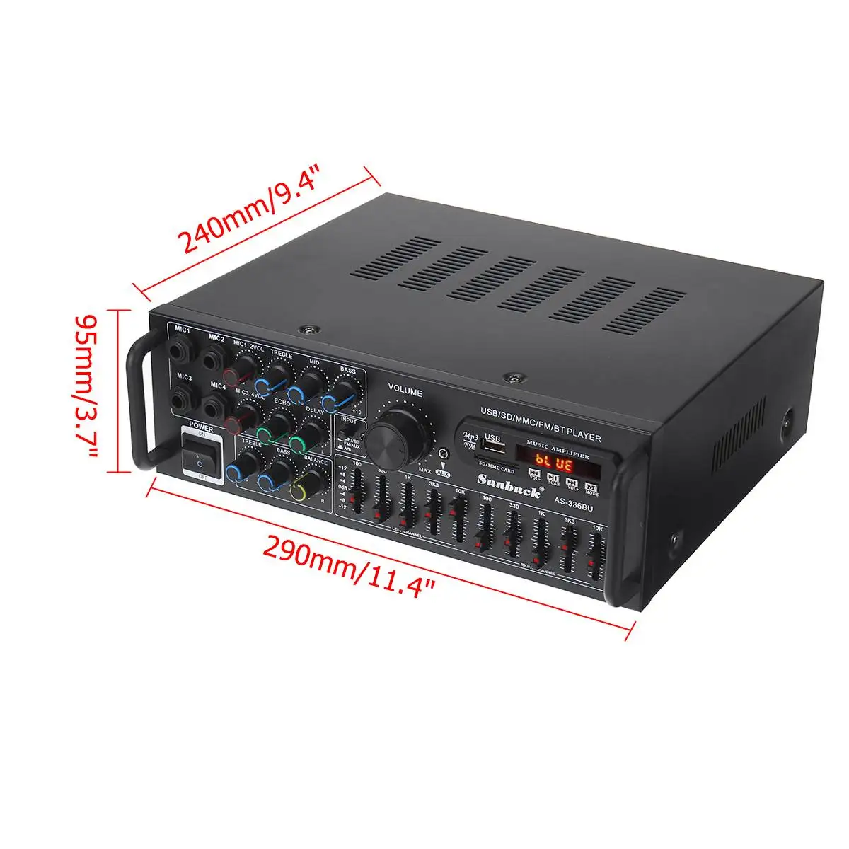 2000 Вт стерео усилитель bluetooth объемный звук USB SD AMP FM DVD AUX ЖК-дисплей домашний кинотеатр караоке пульт дистанционного управления