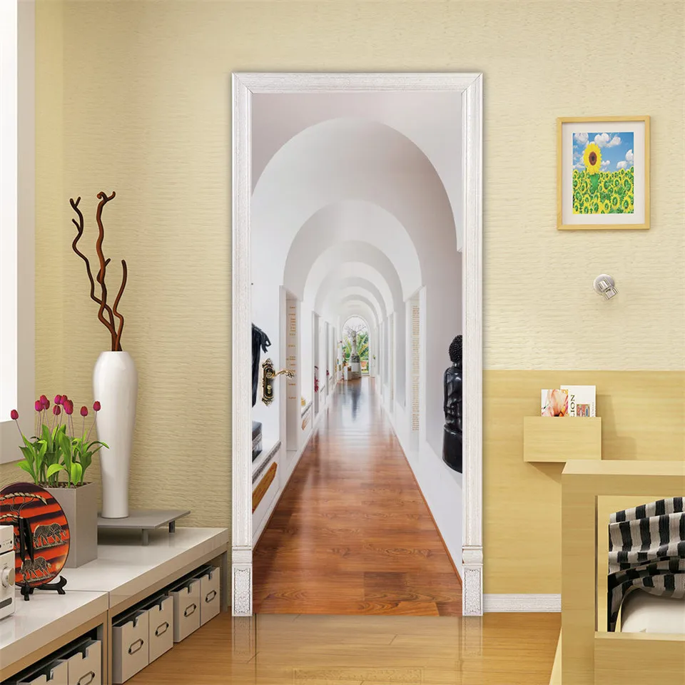 2 шт.компл. наклейка на дверь для гостиной спальни декоративные клейкие Обои DIY плакат 3D Визуальный домашний декор Фреска ПВХ Наклейка на стену