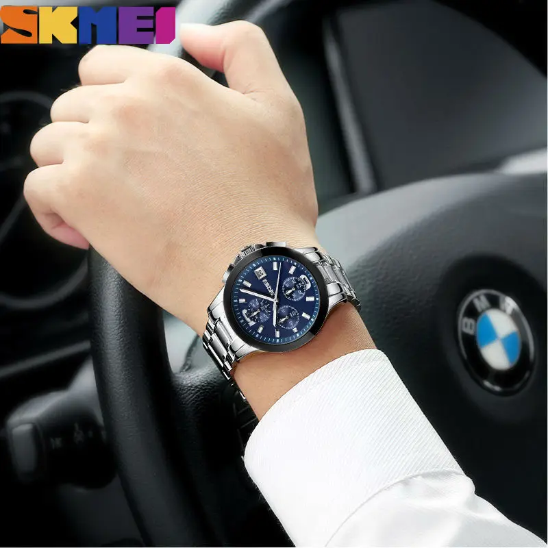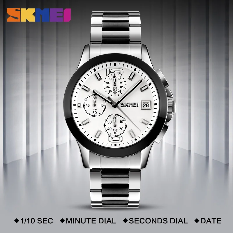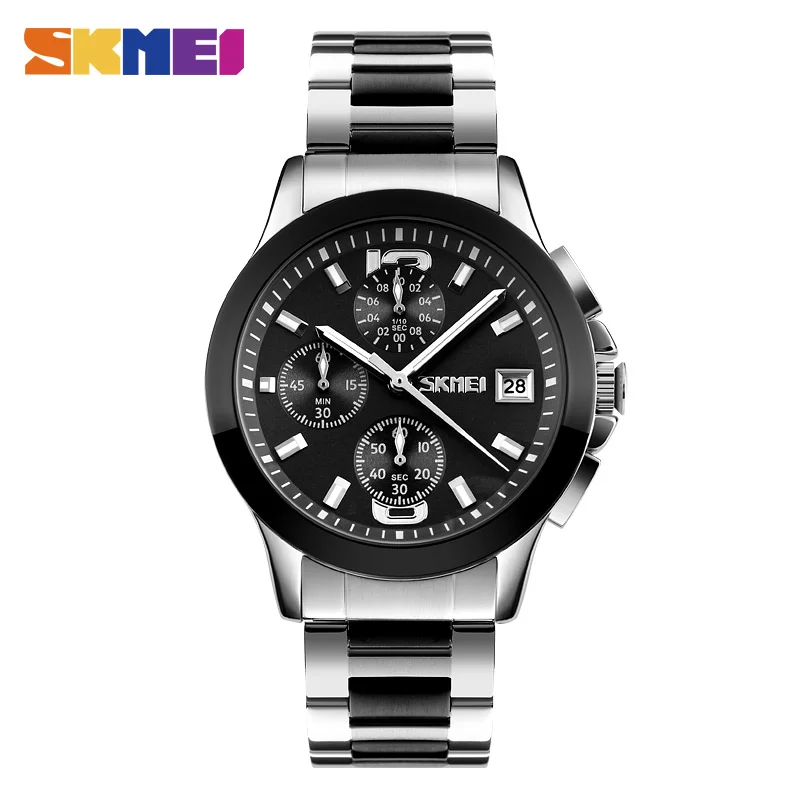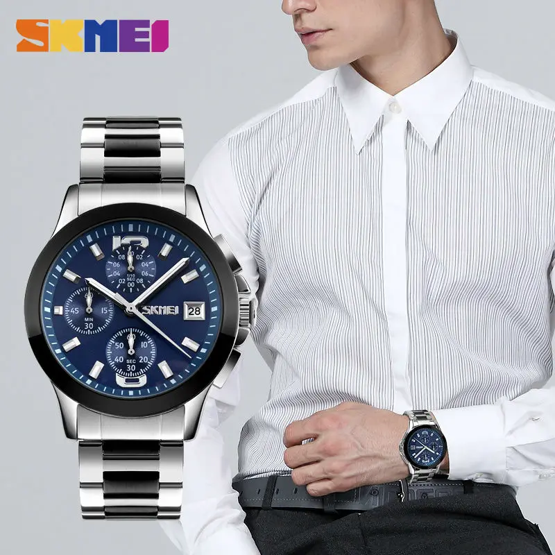 SKMEI Брендовые мужские часы бизнес серии Роскошные Кварцевые наручные часы из нержавеющей стали мужские водонепроницаемые часы с хронографом 30 м 9126