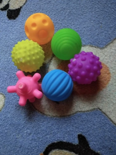 Хорошие мячики. Цвет чуть более блёклый, чем на картинке. Имеется невыраженный запах, думаю, скоро выветрится. При нажатии мячики достаточно громко пищат. Для детской руки удобные. Рекомендую.