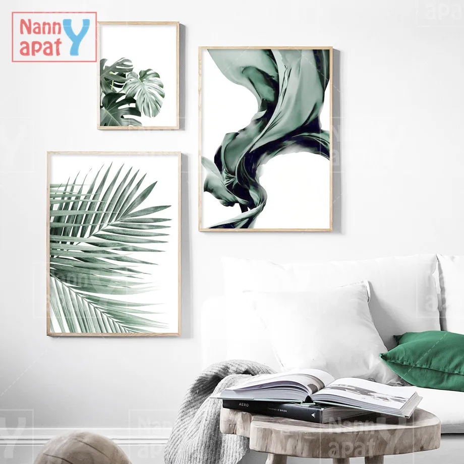 Современный домашний декор, большие зеленые листья монстеры, эвкалипт, настенная Картина на холсте, постеры и принты для гостиной, спальни