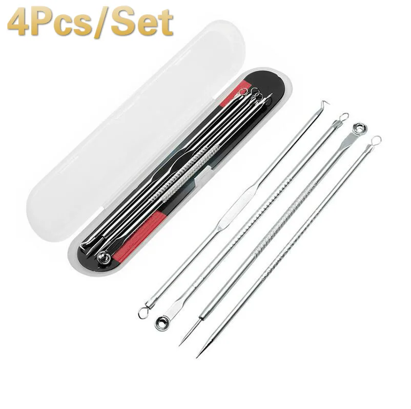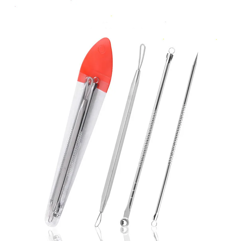 4 шт.компл. инструмент для удаления угрей, прыщей, прыщей, угрей, ложка для ухода за кожей лица, иглы, очиститель пор для лица, массаж