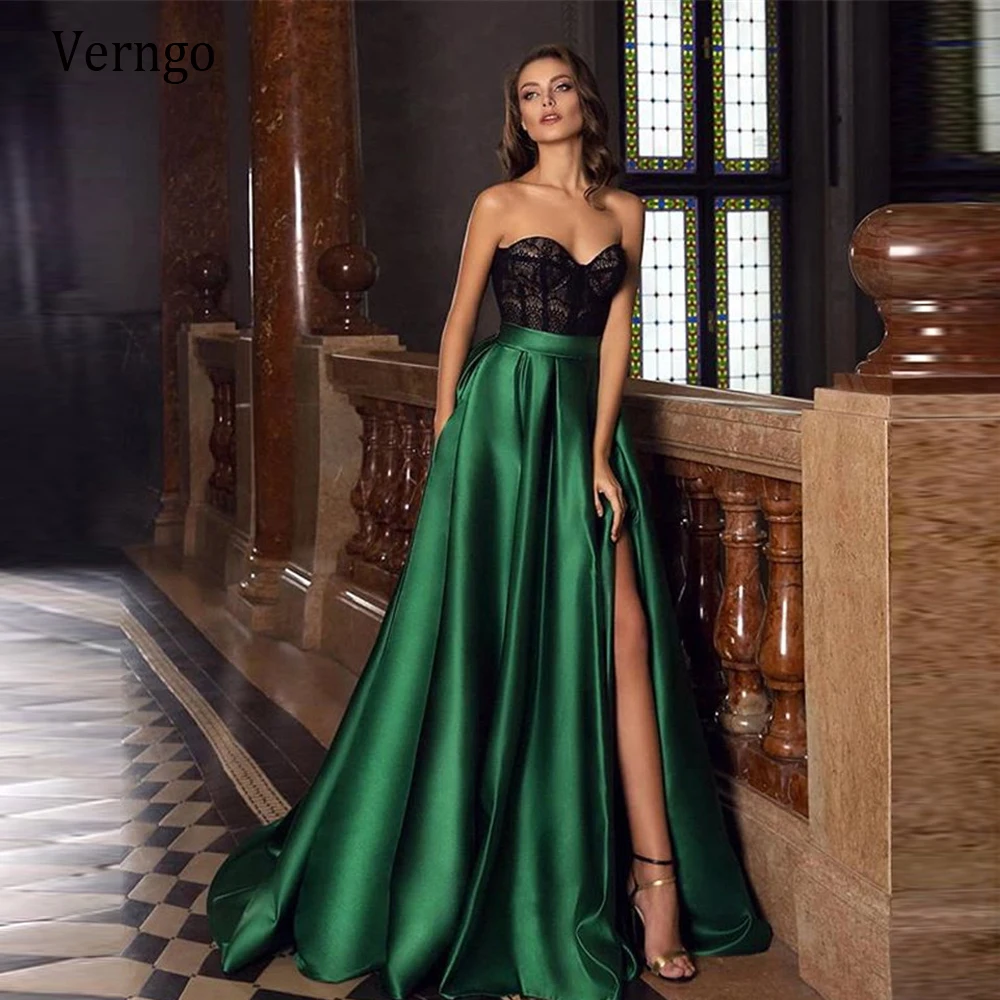 Verngo 2021 современное черно-изумрудно-зеленое вечернее платье кружевное атласное милое боковое сексуальное Длинные платья для выпускного бала вечернее платье