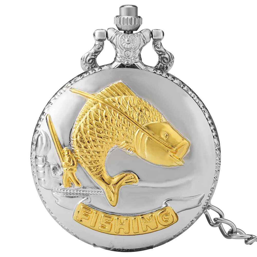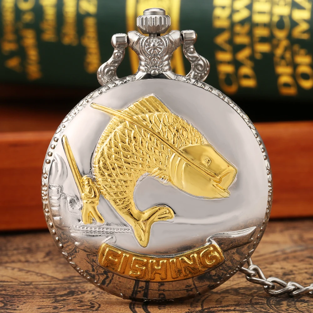 Роскошные рыболовные дизайнерские кварцевые карманные часы с брелоком подвеска Золотая Рыба часы полная Охота 30 см грубая цепочка карманные подарки для мужчин reloj