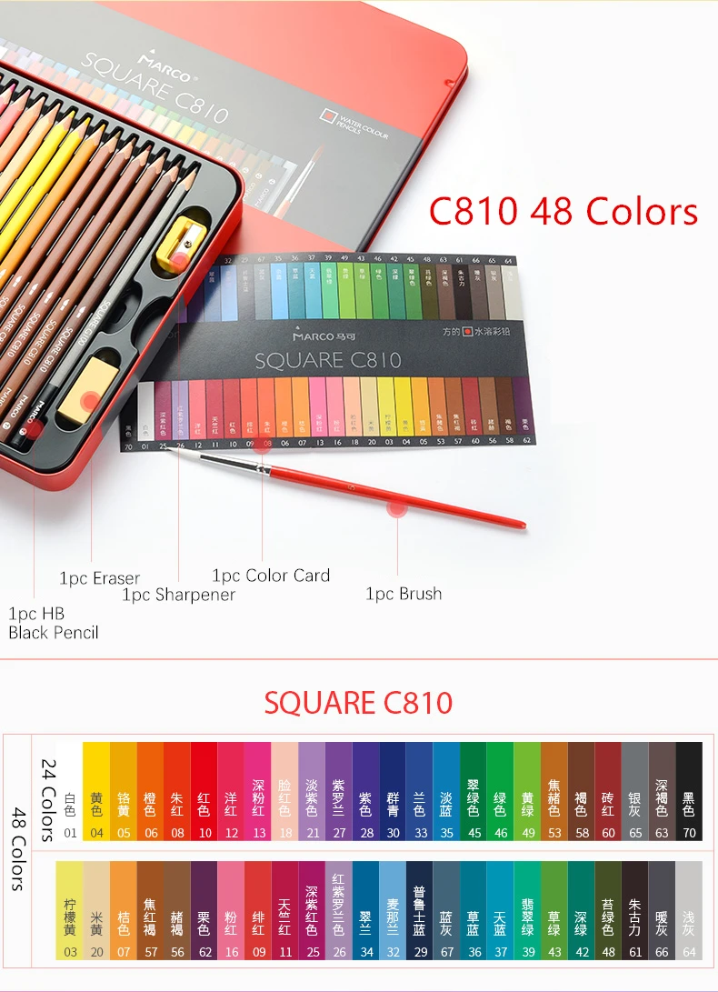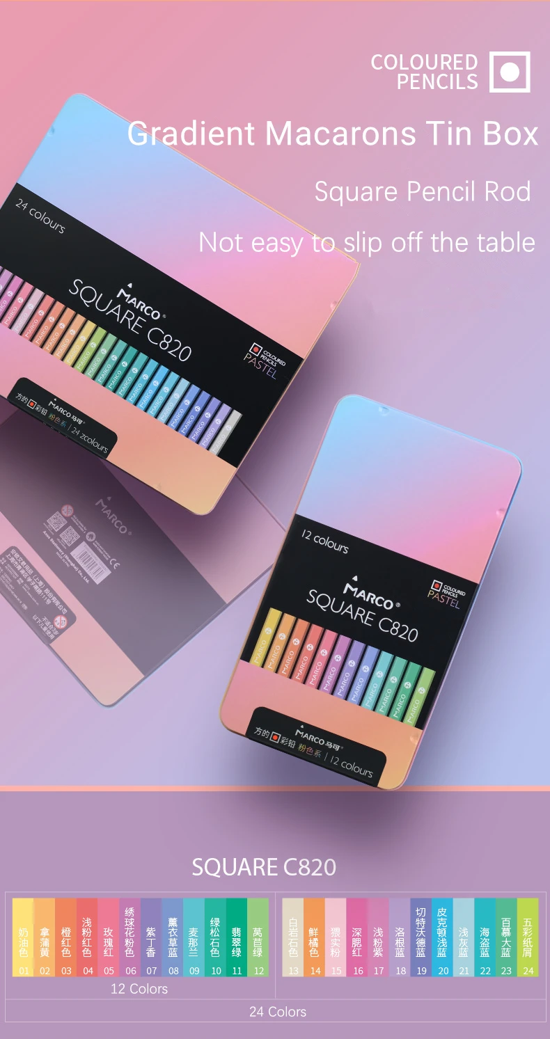 Marco 1224 цветные квадратные пастельные цветные карандаши, фотоцветные карандаши, Профессиональные цветные карандаши для школы