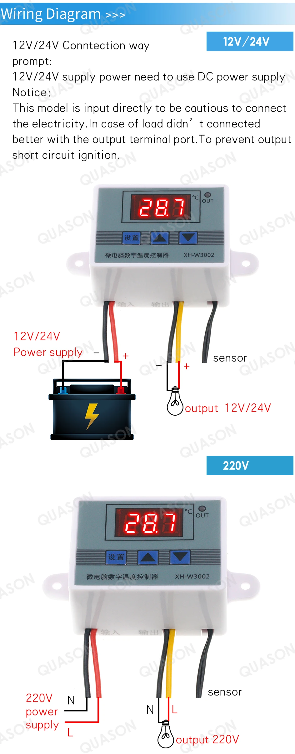 XH-W3002 W3002 AC 110 В-220 в DC 24 В DC 12 В светодиодный цифровой терморегулятор Термостат Регулятор Лер контроль температуры переключатель метр