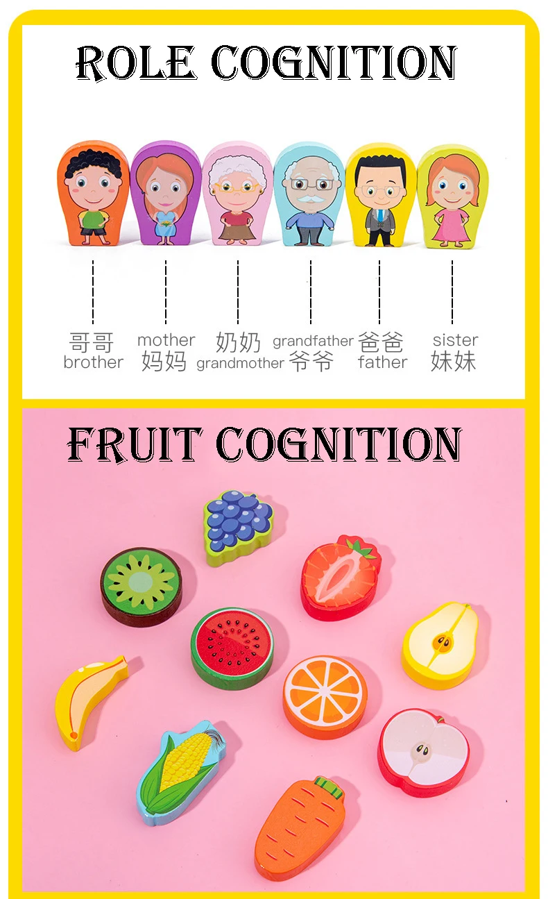 Монтессори Развивающие деревянные игрушки семейная форма познание цвета совпадающие животные фрукты буквы совпадающий номер английское познание