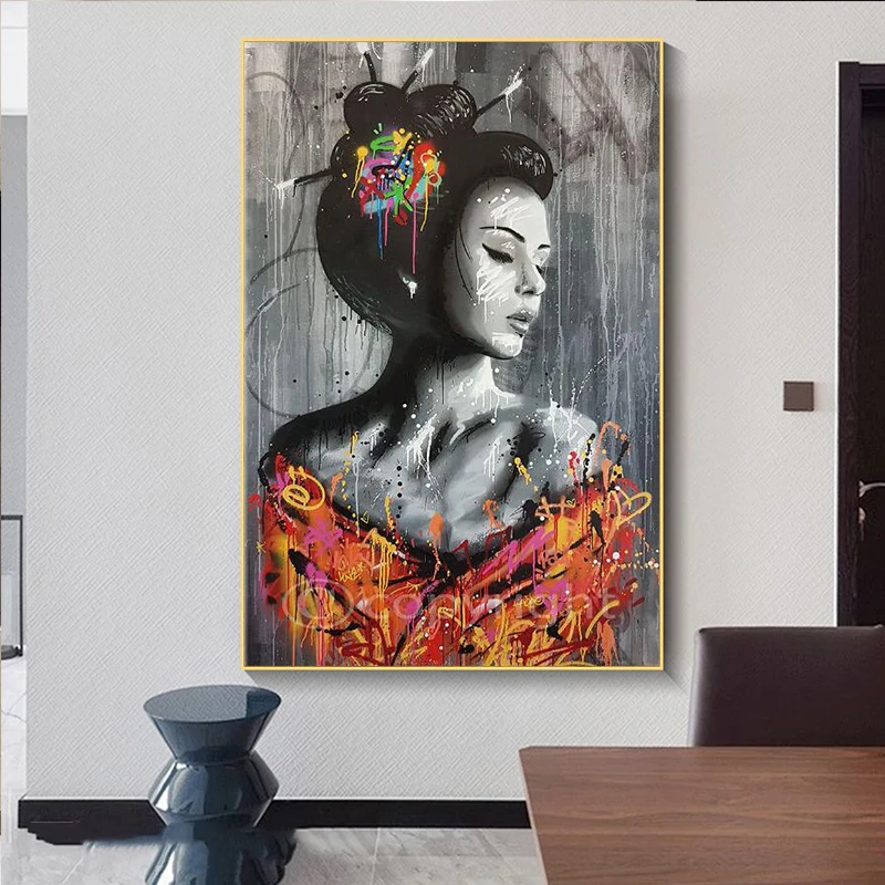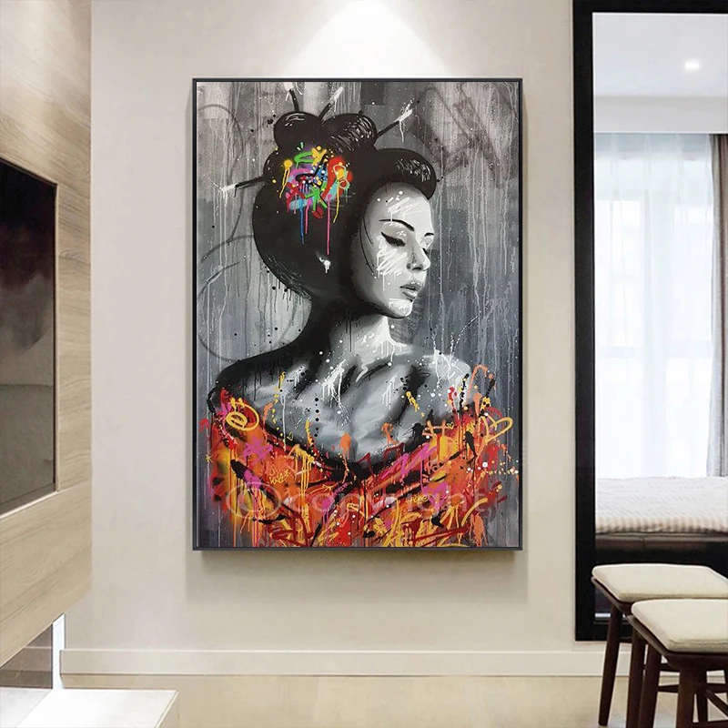 Японские женщины граффити искусство настенные картины художественные плакаты и принты сексуальная женщина уличное искусство фотографии украшения дома стены