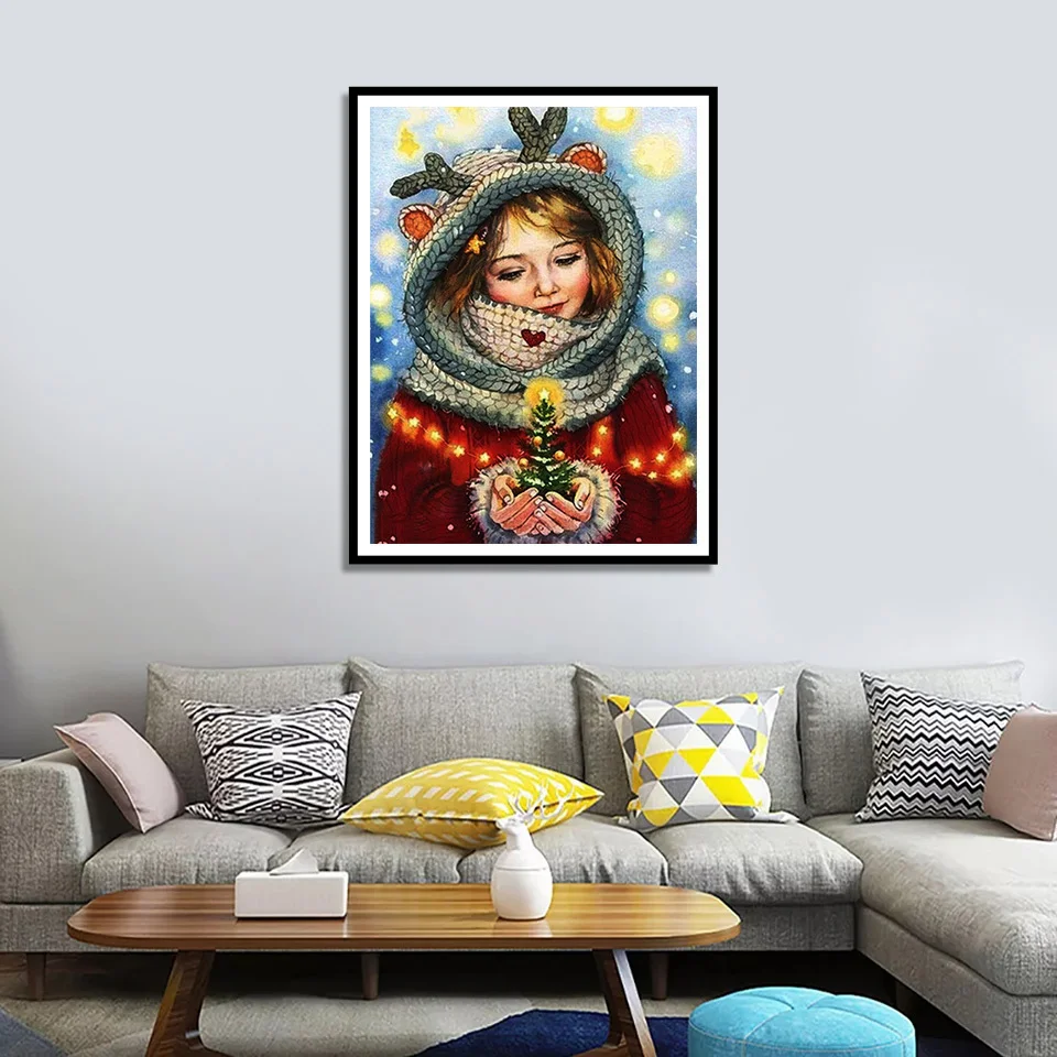 EverShine Алмазная картина полностью квадратная дрель вышивка стразами девушка зима вышивка крестом портрет ручной работы подарок Декор для дома