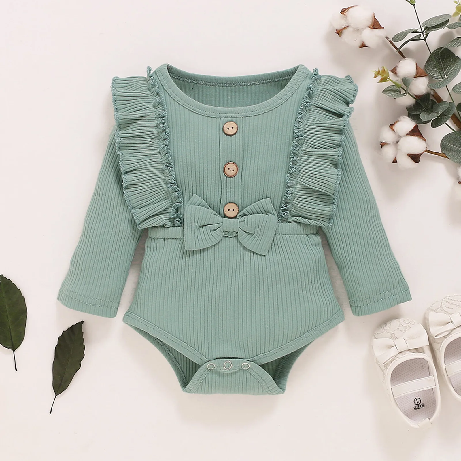 Номер моделиNewborn Baby Girls Long Sleeve Ruffles Solid Bowknot Romper Bodysuit