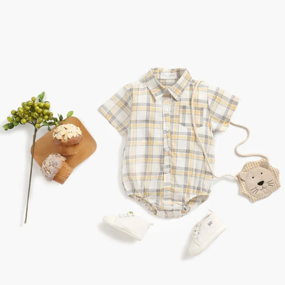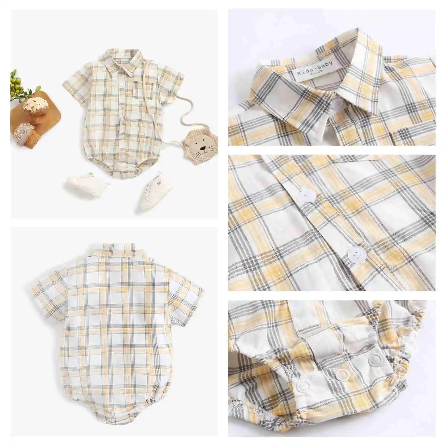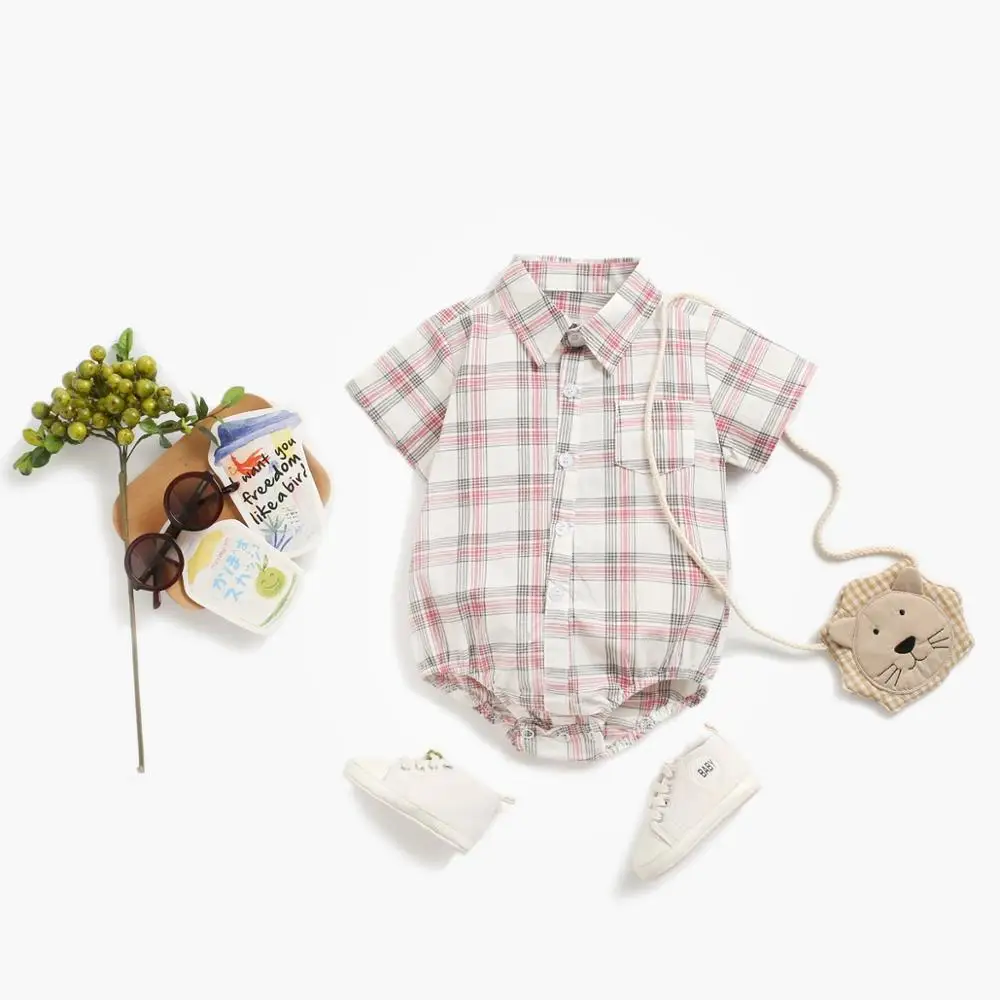 Повседневные клетчатые комбинезоны sanluтоз для маленьких мальчиков, летняя детская одежда с коротким рукавом, милая Одежда для младенцев и мальчиков