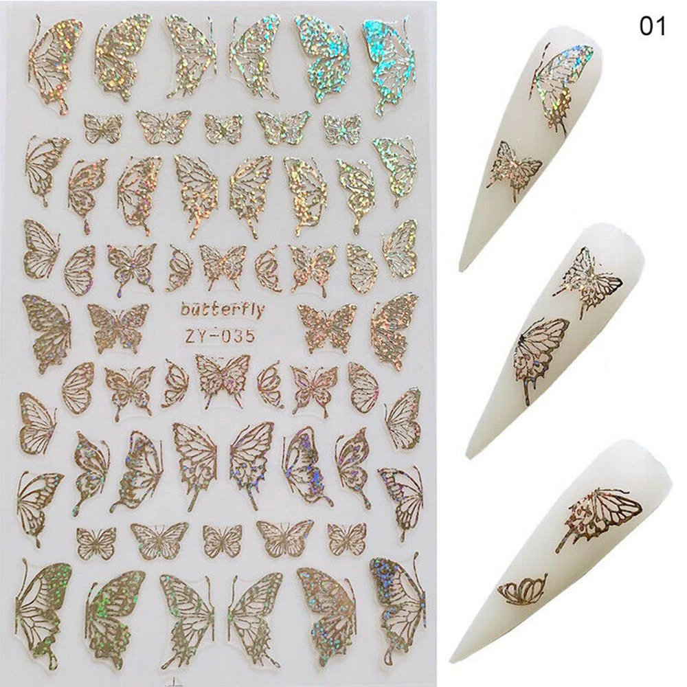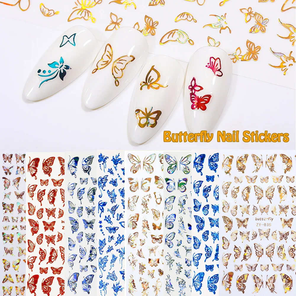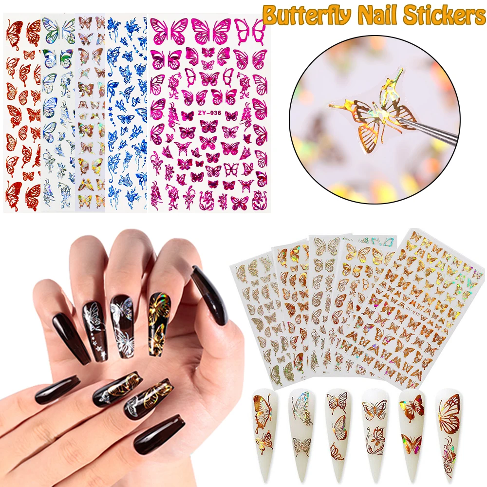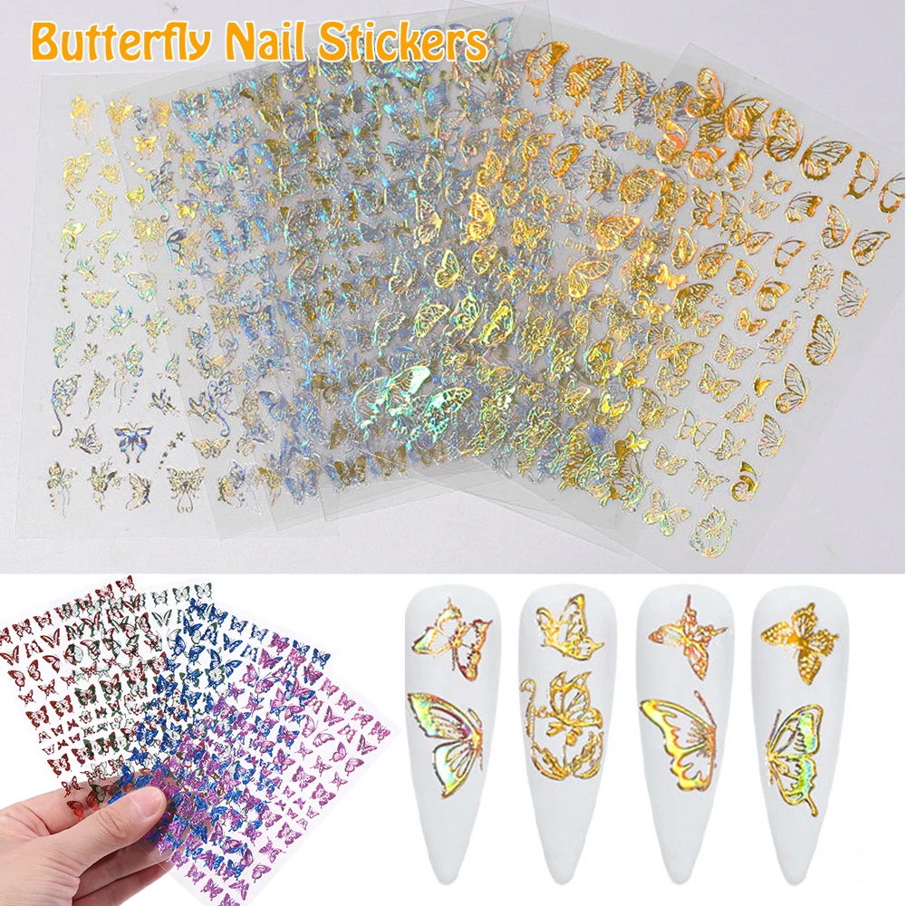 3D модные наклейки для ногтей с лазерной бабочкой, новые клейкие слайдеры, наклейки для ногтей, украшения для маникюра, инструмент для дизайна ногтей