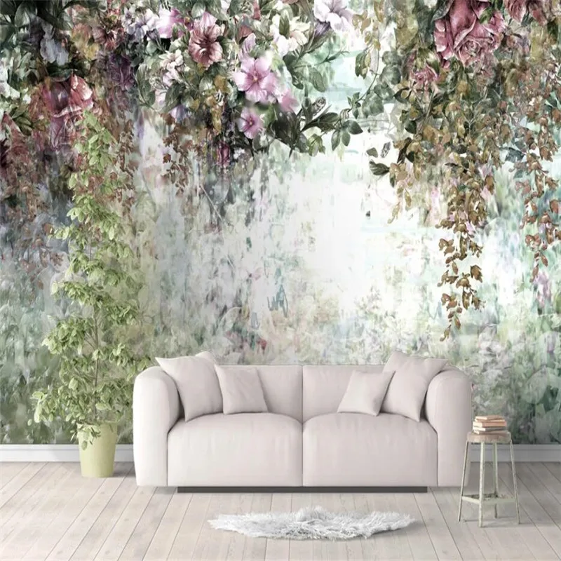 Настенные обои на заказ, винтажные, ручная роспись, 3D цветы, расте...