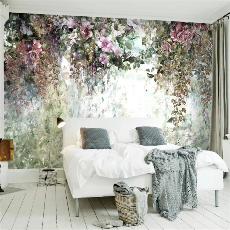 Настенные 3D-обои на заказ, роспись вручную в стиле ретро, цветы в ...