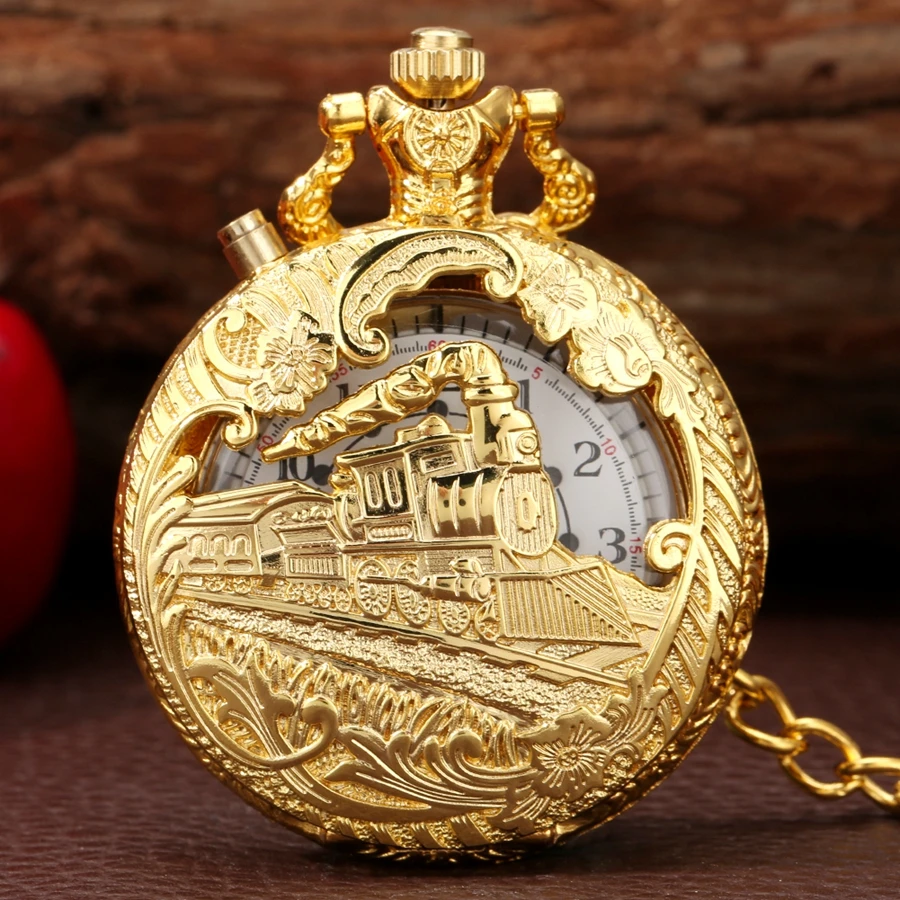 Топ Роскошный Золотой светящийся светодиодный кварцевые карманные часы Поезд Локомотив двигатель стимпанк кварцевые FOB светильник подарки для мужчин женщин мужчин