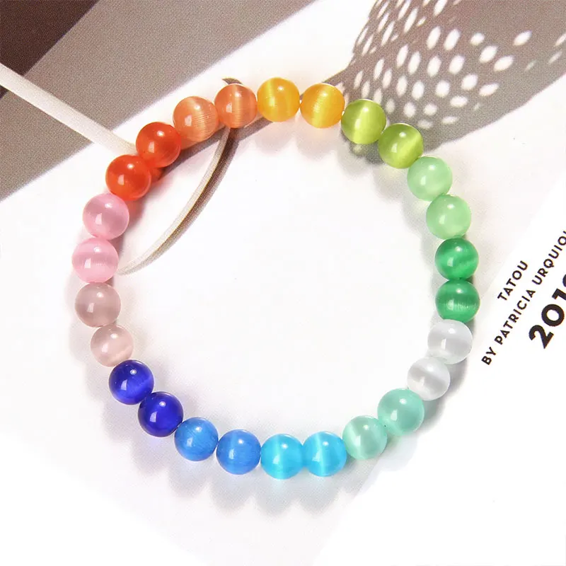 Браслет с 7 чакрами, многоцветные браслеты кошачий глаз, радужные восстанавливающие натуральные камни, браслеты для женщин и мужчин, Модная бижутерия, подарок