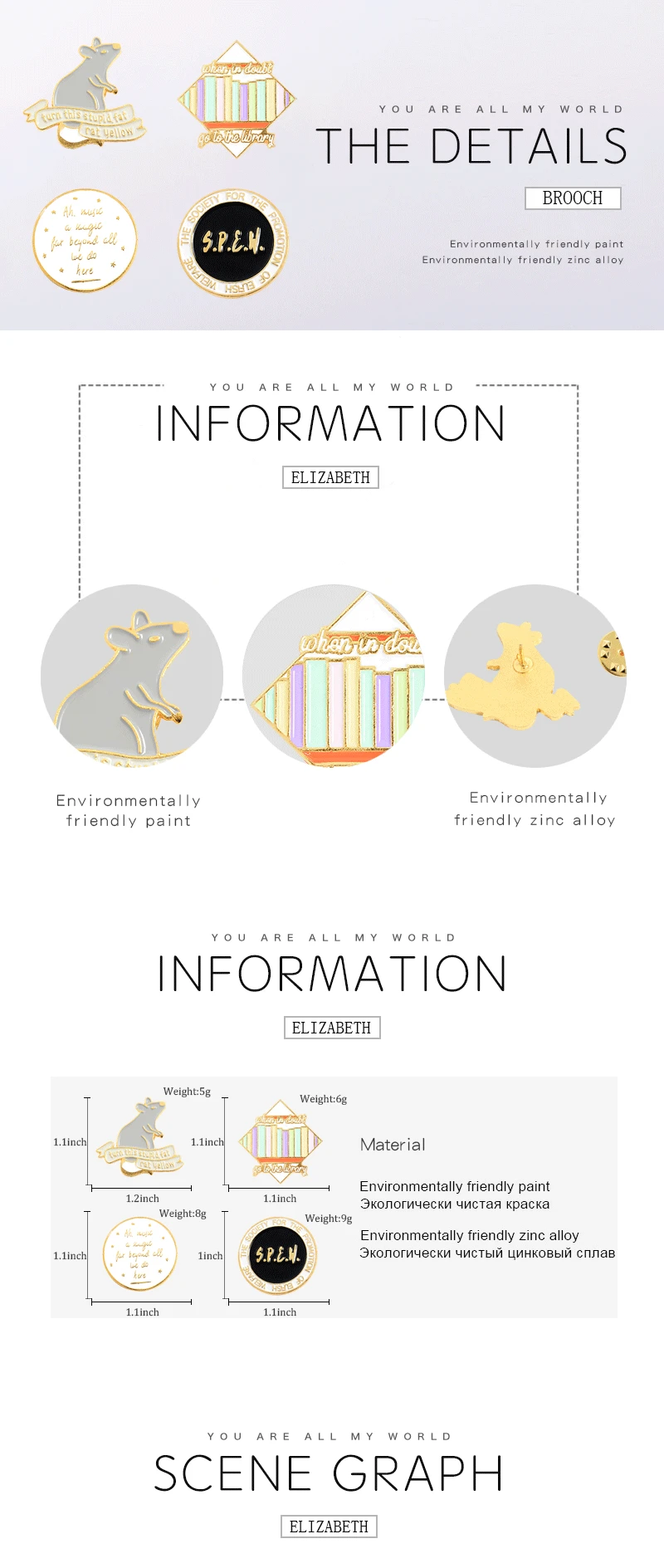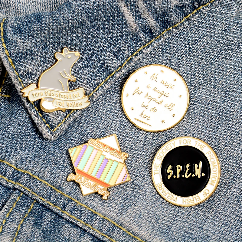 Серый толстый крыса библиотеки книг забавные цитаты мем круглые броши и эмаль на булавке на мультяшным персонажем на нашивке, одежда булавка пряжка Волшебная ювелирные изделия