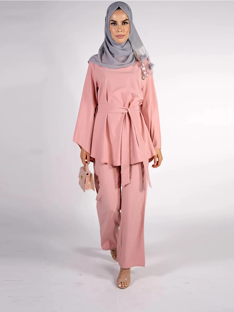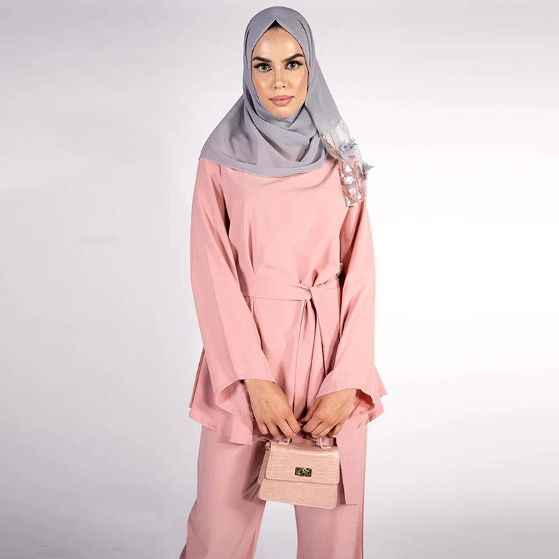 Последняя скромная Простая цветная блузка и брюки размера плюс, женская мусульманская одежда из двух предметов, комплекты Abaya
