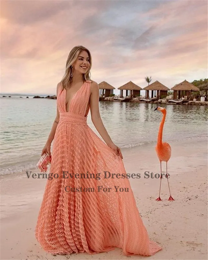 Verngo Новинка 2021 оранжевые длинные вечерние платья трапециевидной формы с глубоким v-образным вырезом кружевные Элегантные платья для выпускного вечера Длинные вечерние платья