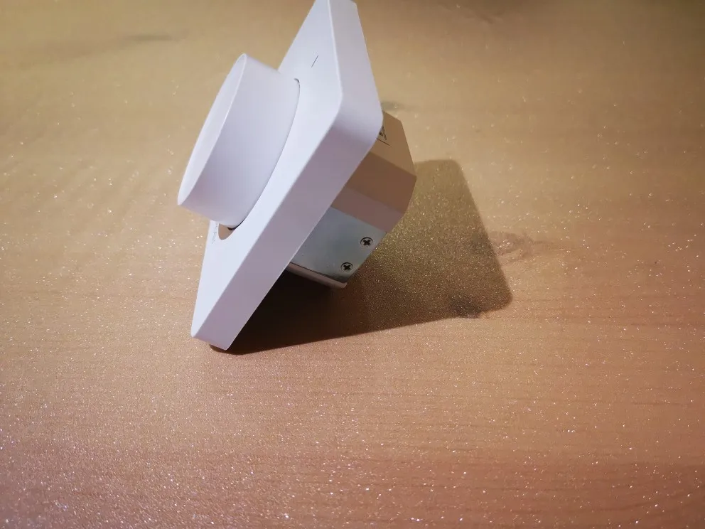 Очень хороший переключатель, все работает правильно даже без приложения, прикосновение и подшипник колеса очень приятно. Будьте осторожны, однако, он немного толстый для классической обивки, и вам нужно иметь нейтральный провод (синий) рядом.