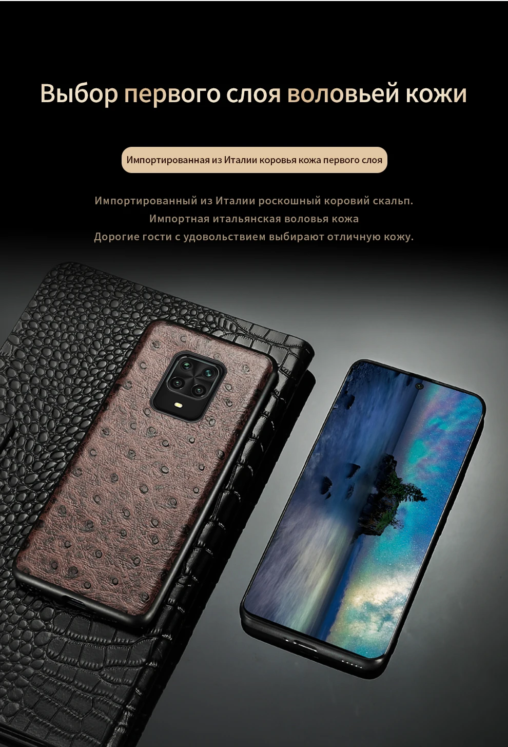 Чехол из натуральной кожи с текстурой страуса для Xiaomi Redmi Note 9 Pro 9S Note 10 8 Pro 7, чехол для Mi 10 10T 9T Pro 9 Poco X3 Pro F3 M3 Xiaomi 10T Lite Note 10 Lite Poco F3 F2 Pro X3 NFC redmi 9 note 8 pro