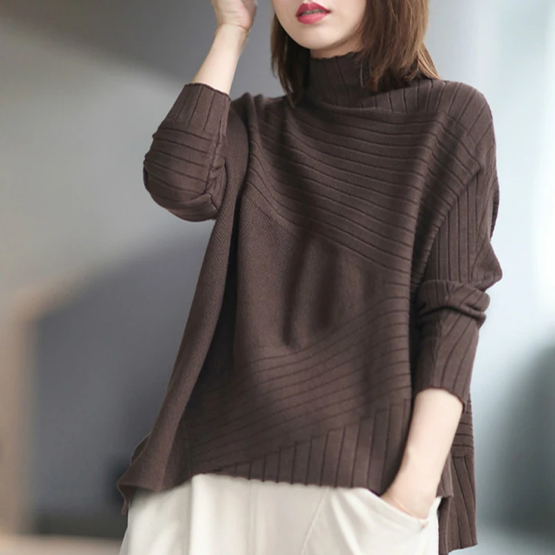 Пуловер женский Зимний вязаный Max LuLu, с высоким воротником, свободный, винтажный, большого размера