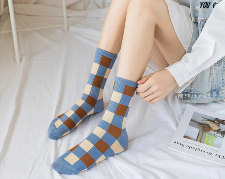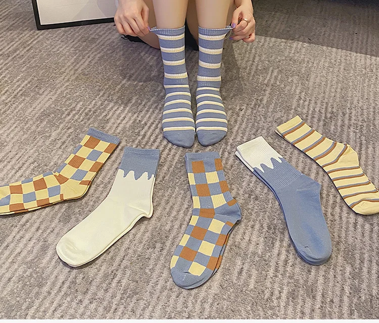 Instimeженские носки в полоску и клетку; Хлопковые носки в стиле Харадзюку; Женские носки; 1 пара